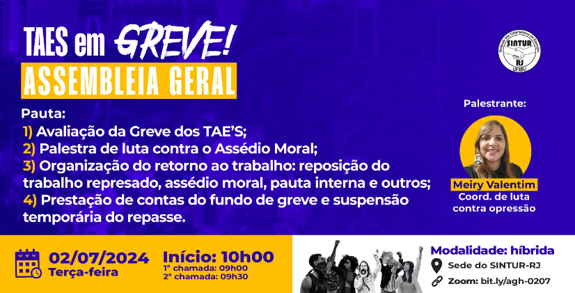Nesta terça-feira (9), às 10h, o coordenador do SINTUR-RJ, Victor Teixeira, vai comandar uma reunião sobre as mudanças na carreira TAE após a greve.