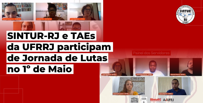 Além disso, o Painel dos Servidores contou com uma exposição específica sobre o "1º de Maio e o Trabalho Técnico-Administrativo", que contou com a participação do Coordenador-Geral do SINTUR-RJ e TAE da UFRRJ André Nascimento, e também dos TAEs Elisângela Soares (UFRRJ), Daniel Ribeiro (UFRRJ), André Nascimento (UFRRJ) e Marcelo Pessoa (UFRRJ).