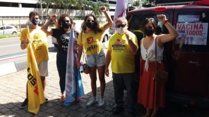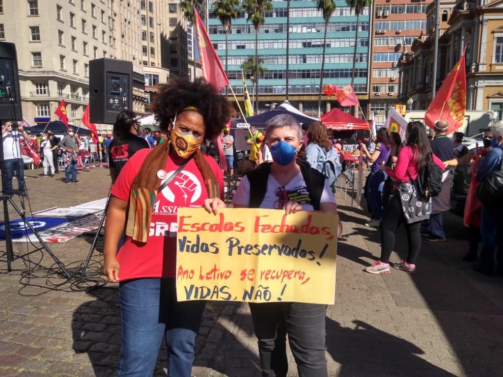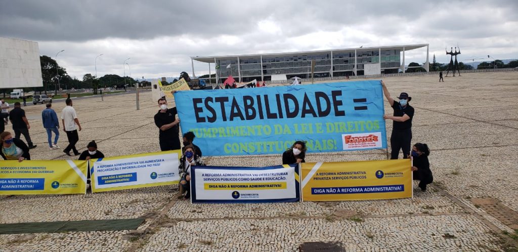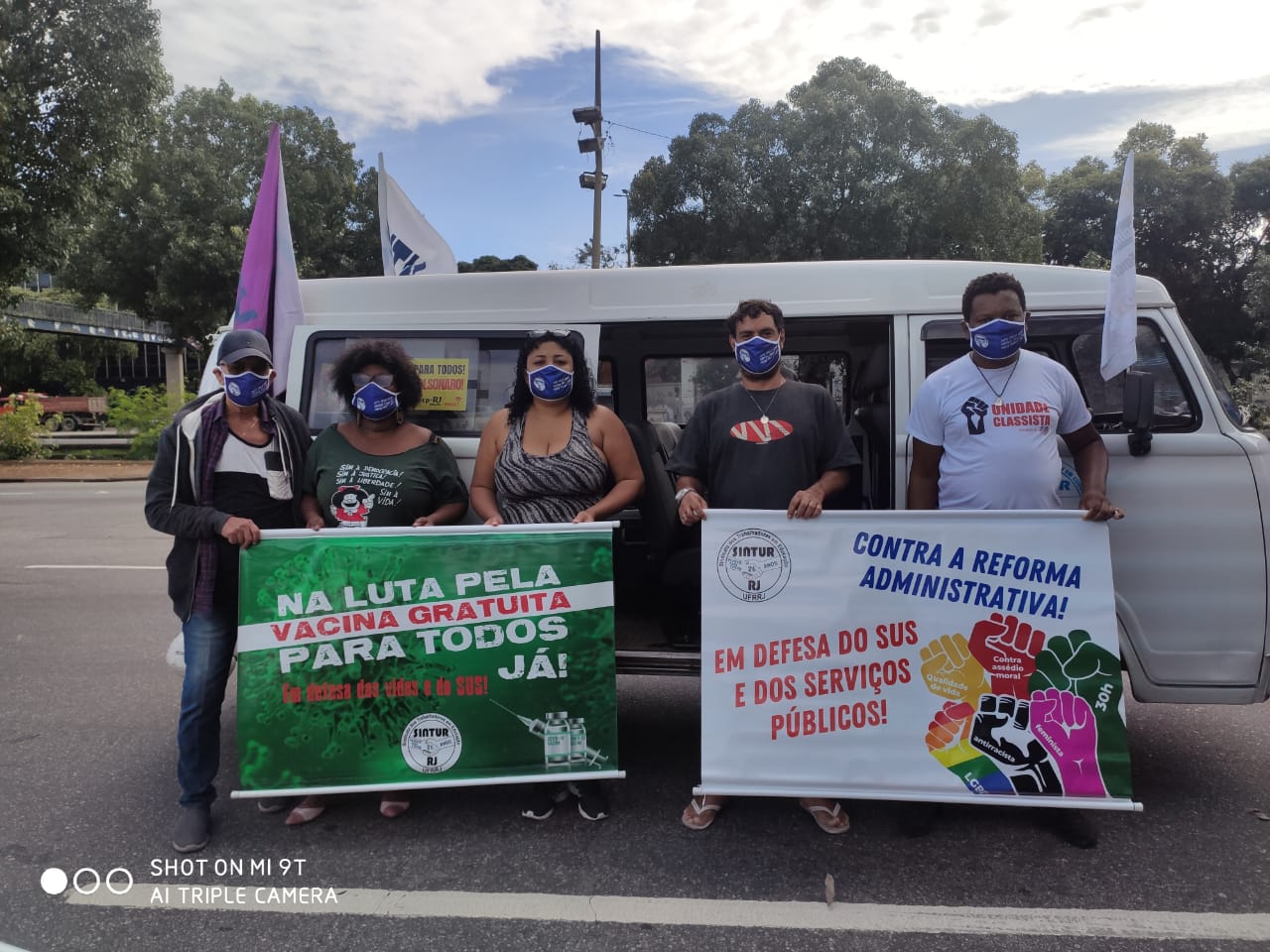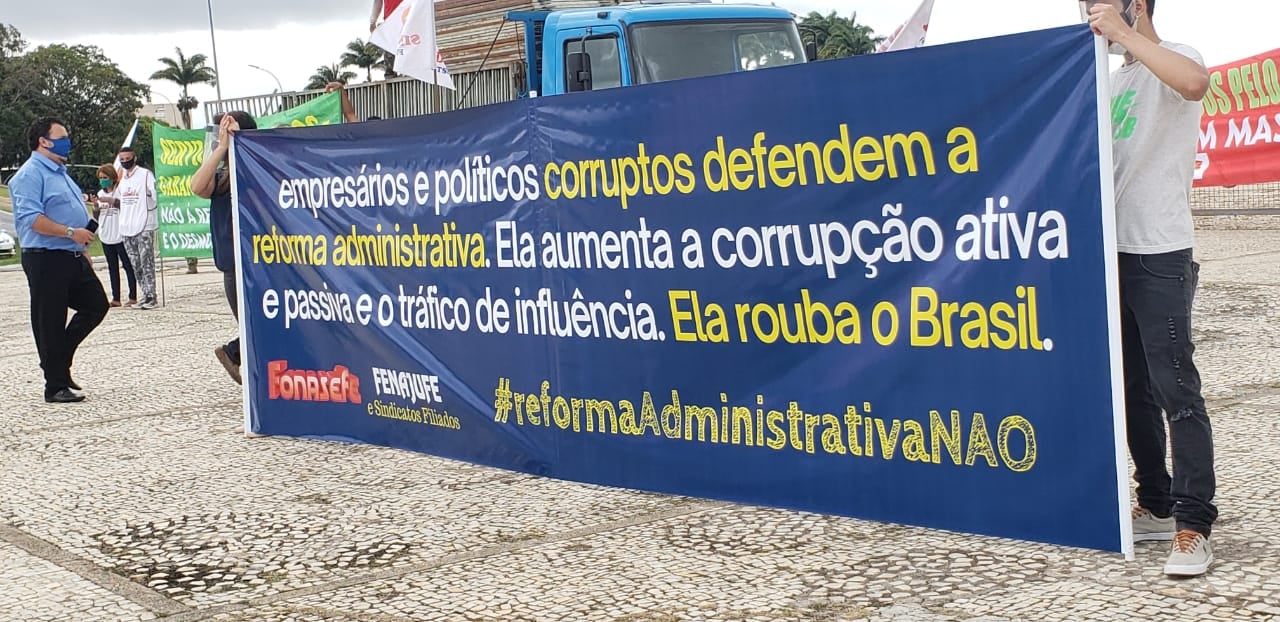 O ato seguiu as regras de segurança e contou com faixas contra a Reforma Administrativa (PEC 32/20), que tramita na CCJ (Comissão de Constituição, Cidadania e Justiça), por vacinação para todos e todas, pelo auxílio emergencial de 600 reais até o fim da pandemia e Fora Bolsonaro.