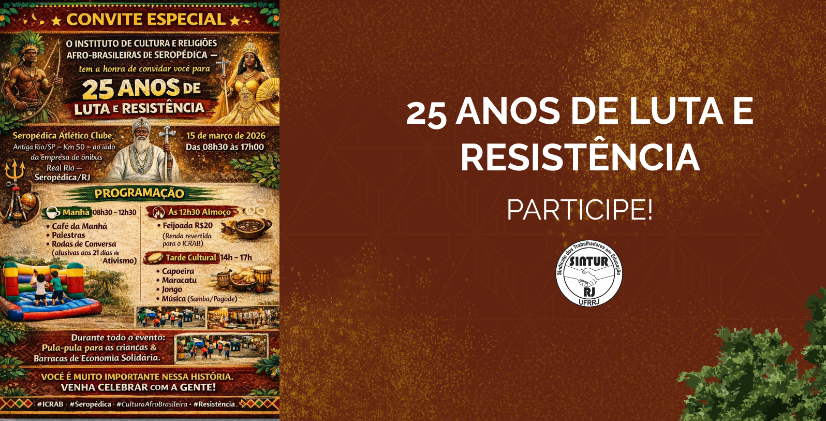 O Instituto de Cultura e Religiões Afro-Brasileiras de Seropédica (ICRAB) convida toda a comunidade para celebrar 25 anos de luta, resistência e valorização da cultura afro-brasileira.