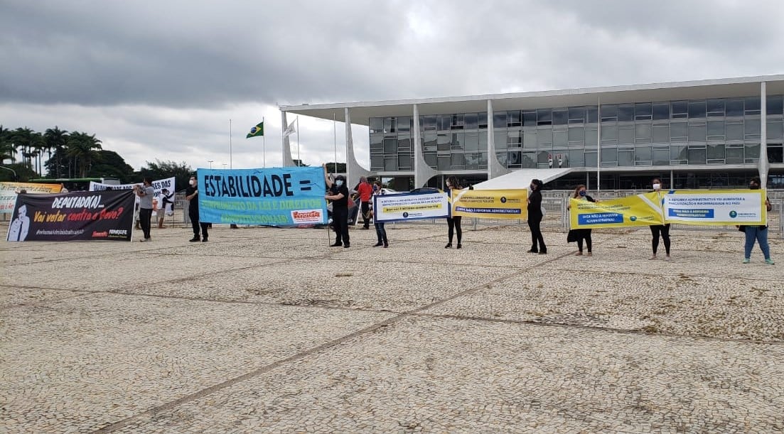 O ato seguiu as regras de segurança e contou com faixas contra a Reforma Administrativa (PEC 32/20), que tramita na CCJ (Comissão de Constituição, Cidadania e Justiça), por vacinação para todos e todas, pelo auxílio emergencial de 600 reais até o fim da pandemia e Fora Bolsonaro.
