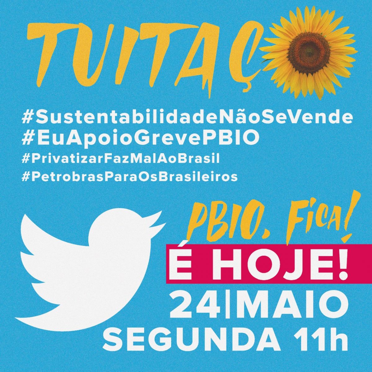 Daqui a pouco, às 11h, faremos uma ação concentrada no Twitter usando a hashtag padrão #EuApoioGrevePbio. O Tuitaço terá duração de 4 horas. Das 11h até as 15h não pare de tuitar! Faça o máximo de tuítes que conseguir. Você também pode responder mensagens de outras pessoas e fazer retuítes comentados. Interaja com o SINTUR-RJ: https://twitter.com/RjSintur