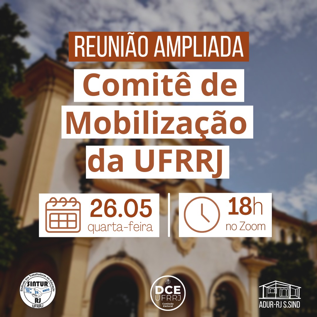 Hoje, quarta-feira, dia 26 de maio, às 18h, acontecerá a Reunião Ampliada de Mobilização da UFRRJ para debater sobre o Ato #29M e a Mobilização Ruralina em defesa da Universidade diante dos cortes orçamentários.