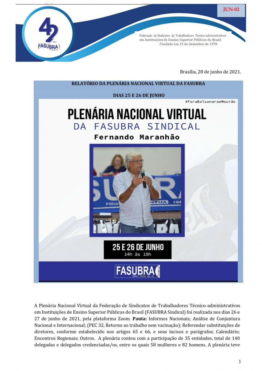 PLENÁRIA NACIONAL VIRTUAL DA FASUBRA
