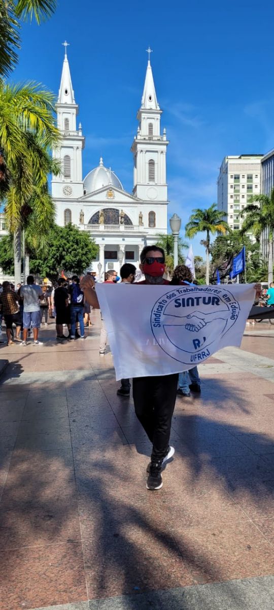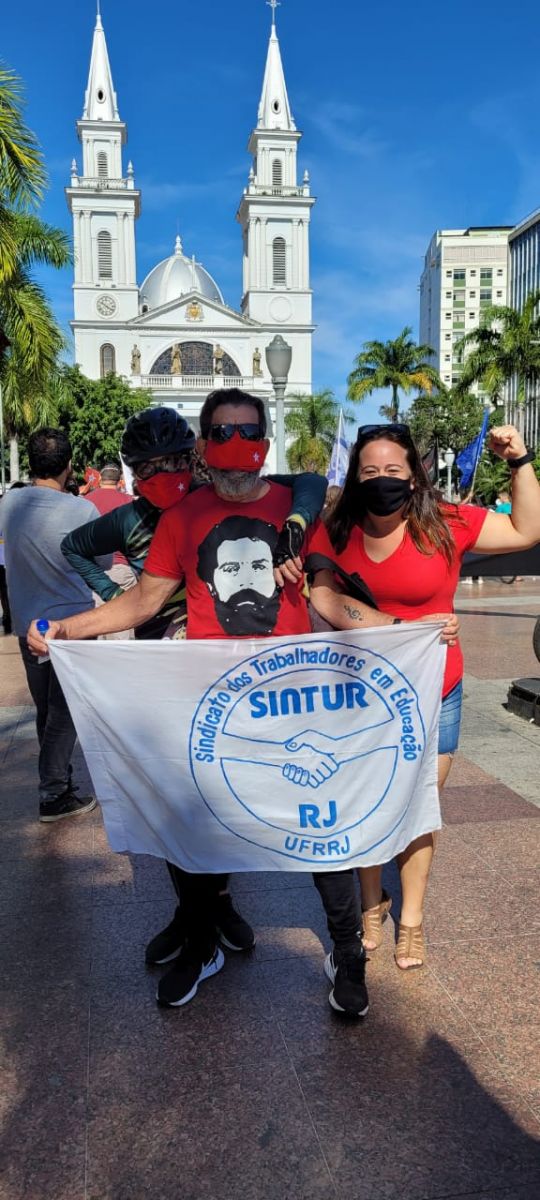 A Delegacia Sindical de Campos, na pessoa de Marcos Lemos, presente no terceiro ato nacional pelo "Fora, Bolsonaro", em Campos dos Goytacazes, região norte fluminense do Rio de Janeiro.