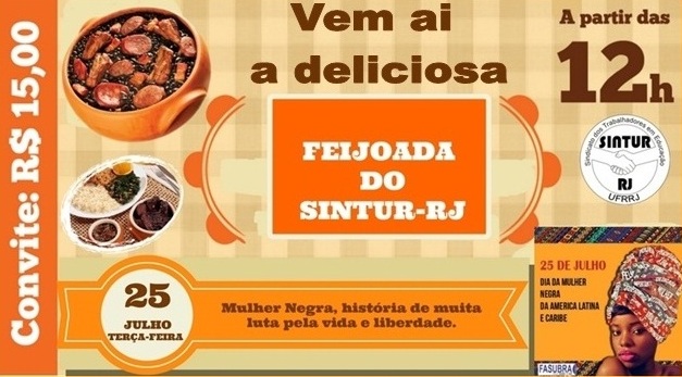Não esqueça: Dia 25 de julho, terça-feira, a partir das 12 horas, na sede do Sintur-RJ.