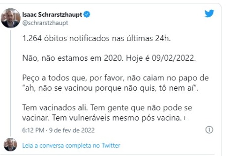 O cientista de dados Isaac Schrarstzhaupt, coordenador da Rede Análise Covid-19, alerta que, entre os óbitos, não estão apenas os não vacinados, apesar de serem maioria. “Tem vacinados ali. Mas tem gente que não pôde se vacinar. Tem vulneráveis mesmo pós-vacina”, tuitou. Ele lembrou, também, que há locais que apresentam dificuldades logísticas à vacinação. E, mesmo entre os não vacinados, uma parcela é vítima da onda de desinformação e negacionismo.