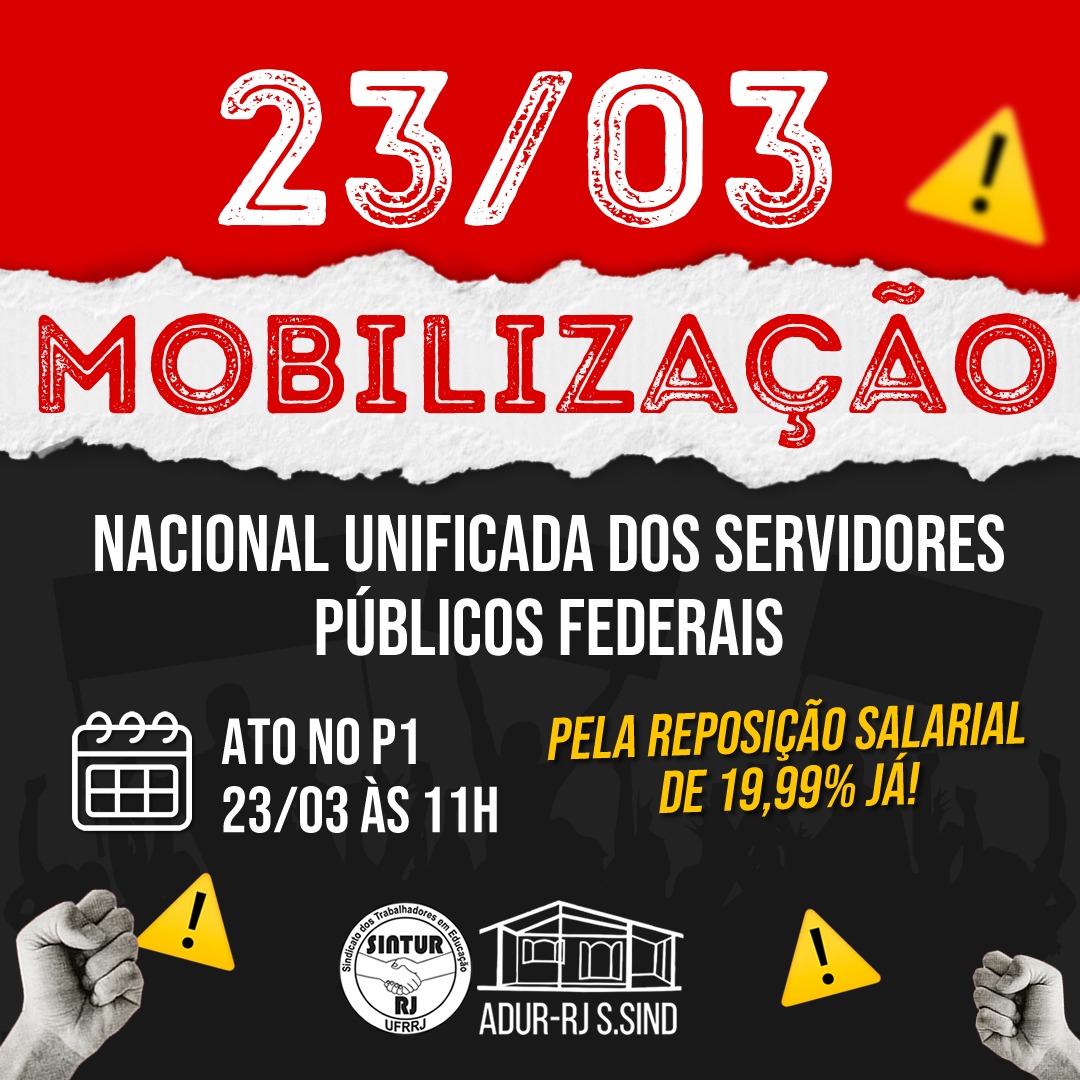 Convocamos todos, todas e todes para 23 de março, AMANHÃ, paralisar suas atividades por 24 horas. Vamos nos mobilizar. Não vá ao setor de trabalho, não atenda ligações da chefia, não responda e-mail's.