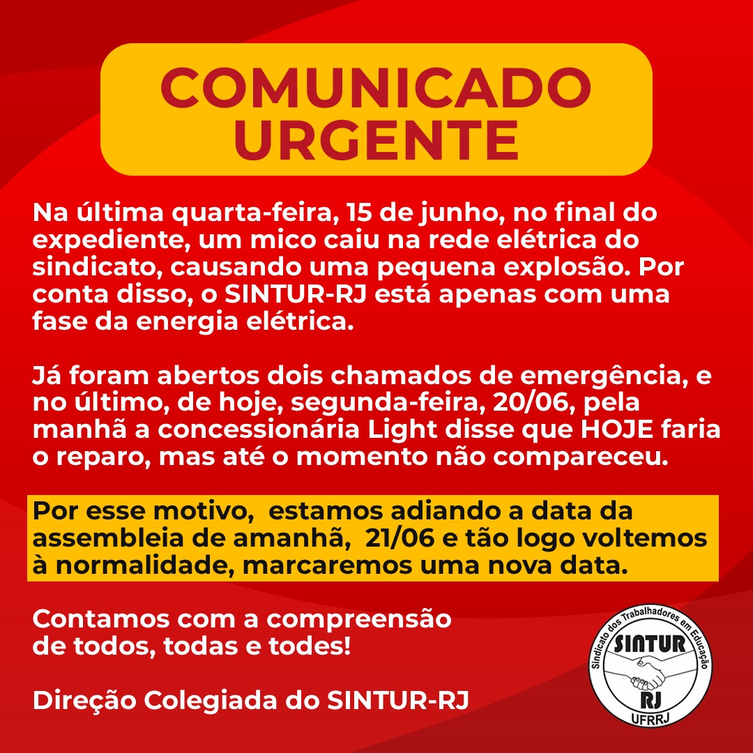 COMUNICADO URGENTE: ASSEMBLEIA ADIADA!