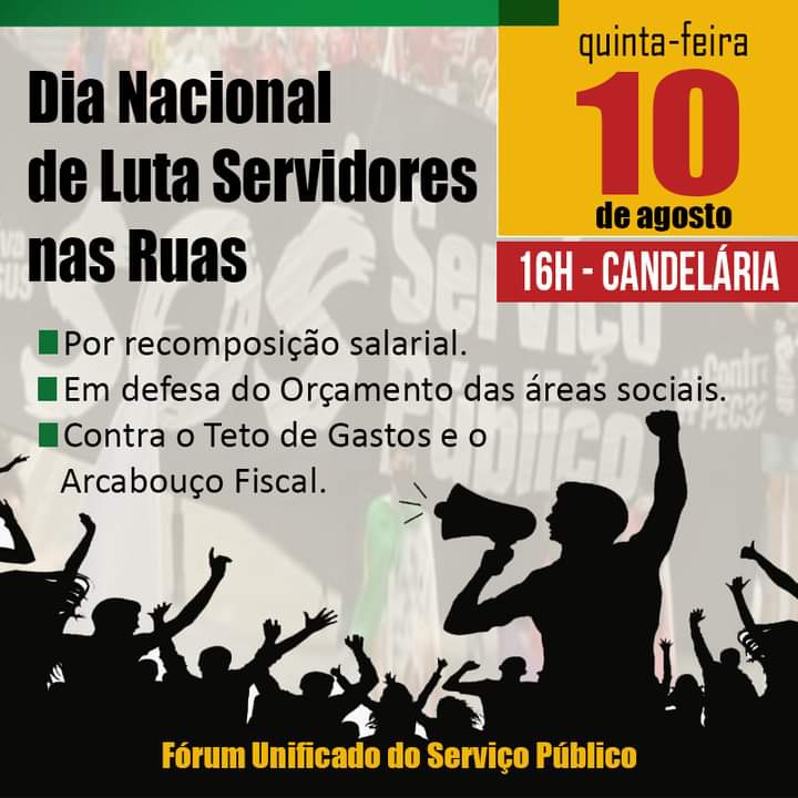 Dia 10 de agosto é dia de ir às ruas em Defesa da Recomposição Salarial, Reestruturação da Carreira, Contra o Teto de Gastos e o Arcabouço Fiscal