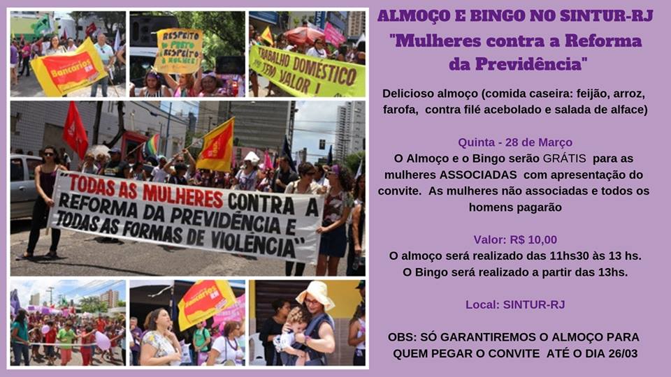 Teremos um Bingo "Mulheres contra a Reforma da Previdência"