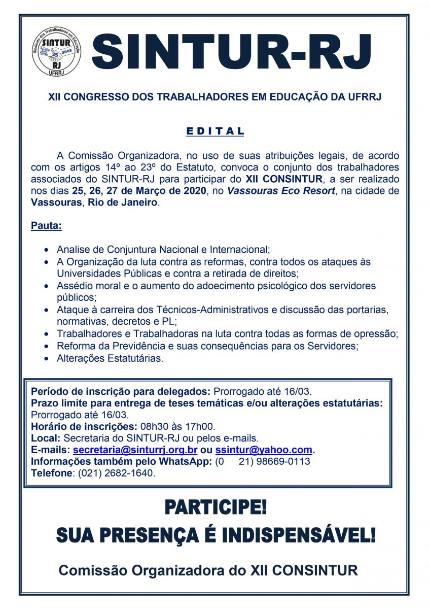 O PRAZO PARA INSCRIÇÕES TERMINA NA SEGUNDA FEIRA, 16/03