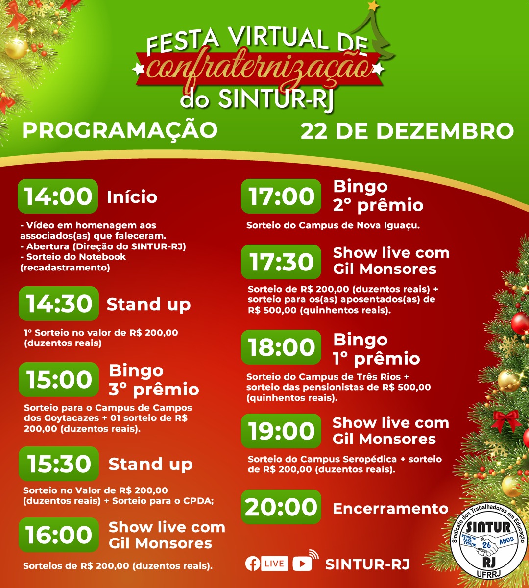 PROGRAMAÇÃO COMPLETA - FESTA VIRTUAL DE CONFRATERNIZAÇÃO