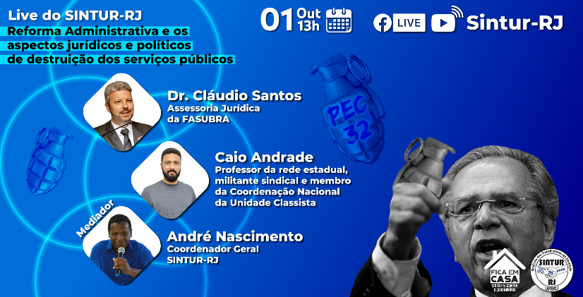 Dia 01 de Outubro, às 13h00, no Facebook e Youtube do SINTUR-RJ!