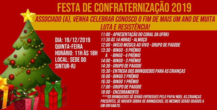 DIA 19 DE DEZEMBRO, NA SEDE DO SINTUR-RJ, A PARTIR DAS 11 HORAS