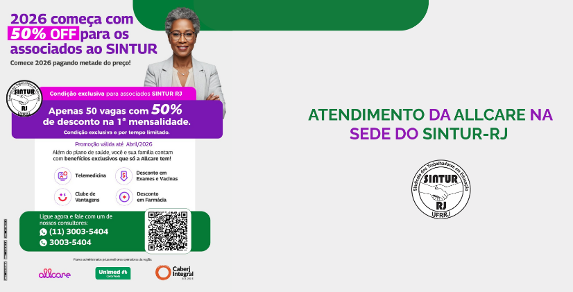 Atenção, ficou sabendo? Amanhã é dia de atendimento da Allcare no SINTUR-RJ.
