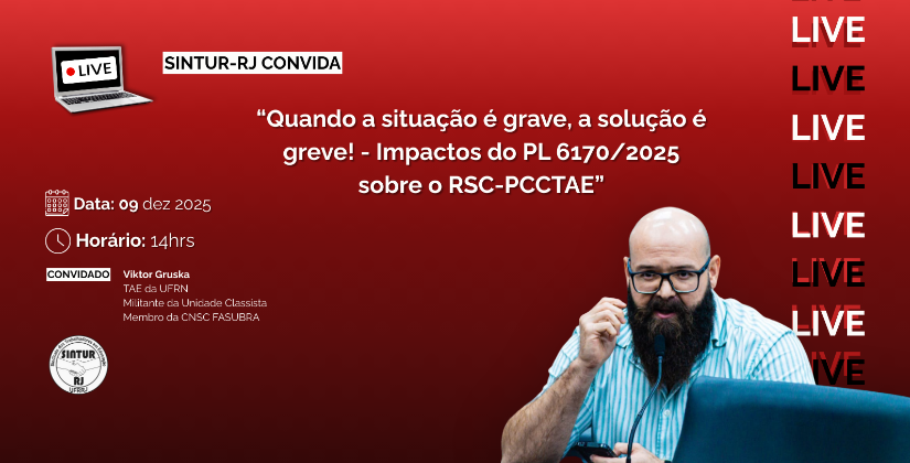 O SINTUR-RJ torna público nota de profunda indignação e seu luto diante do duplo assassinato de Allane Pedrotti e Layse Pinheiro, ocorrido no dia 28 de novembro de 2025, na unidade Maracanã do Centro Federal de Educação Tecnológica Celso Suckow da Fonseca (CEFET-RJ)