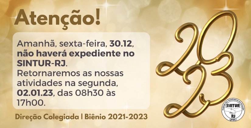 Voltaremos as atividades normais na segunda-feira, 02/01/2023