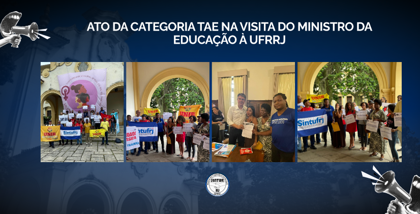 No último 10 de março, os Técnicos-Administrativos em Educação da UFRRJ, organizados pelo Comando Local de Greve do SINTUR-RJ, realizaram um ato de mobilização durante a visita do Ministro da Educação, Camilo Santana, à universidade, por ocasião da recondução do reitor.