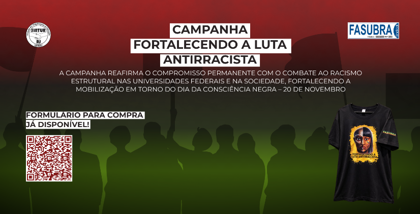 O SINTUR-RJ informa que está participando da campanha “Fortalecendo a Luta Antirracista”, iniciativa da FASUBRA Sindical deliberada no Encontro de Raça e Etnia realizado em novembro de 2025.