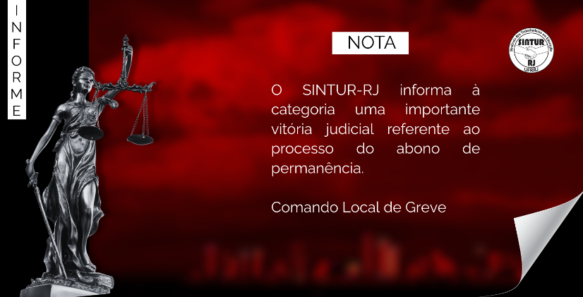O SINTUR-RJ informa à categoria uma importante vitória judicial referente ao processo do abono de permanência.