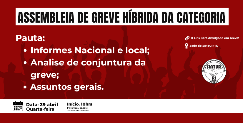 O SINTUR-RJ convoca a categoria para o ato do 1º de Maio, no Rio de Janeiro, em Copacabana, Posto 5, às 14h.