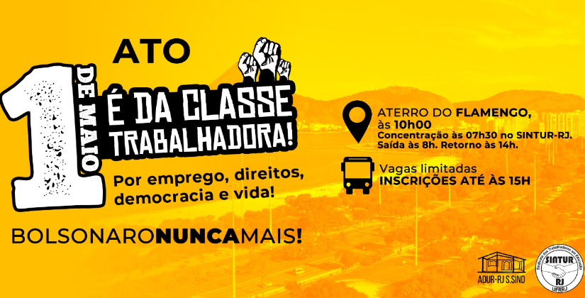 O SINTUR-RJ e a ADUR-RJ, convidam os TAE’S e Docentes da UFRRJ a unirem forças e juntos participarem de mais um grande momento de luta para garantir os direitos e a democracia.