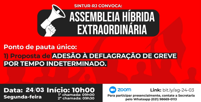 Em Assembleia Geral Extraordinária do SINTUR-RJ realizada nesta quinta-feira (24), as(os) técnico-administrativas(os) da Universidade Federal Rural do Rio de Janeiro, considerando a Jornada de Lutas em defesa da recomposição salarial de 19,99%, deliberaram por: