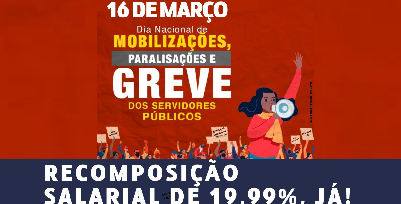 Nossa luta é por recomposição salarial de 19,99%, percentual corroído pela inflação no governo Bolsonaro, revogação do Teto dos Gastos, contra a PEC 32 e contra o desmonte dos serviços públicos.