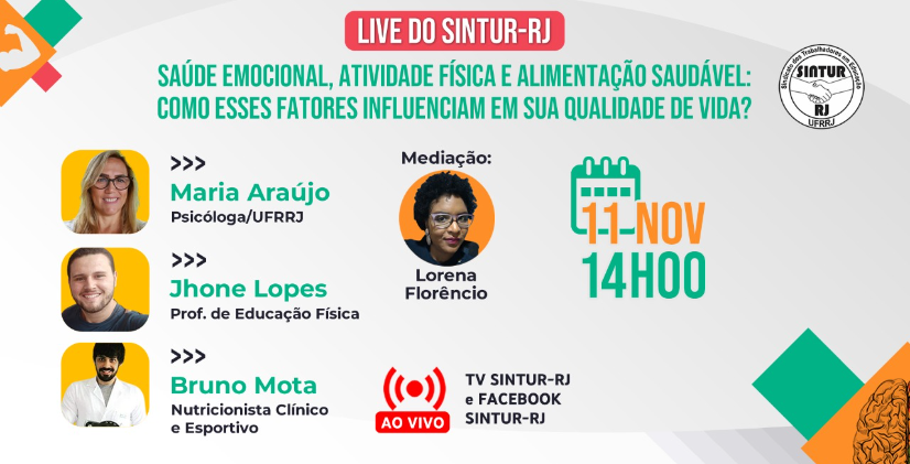 LIVE DO SINTUR-RJ: SAÚDE EMOCIONAL, ATIVIDADE FÍSICA E ALIMENTAÇÃO SAUDÁVEL