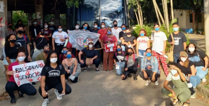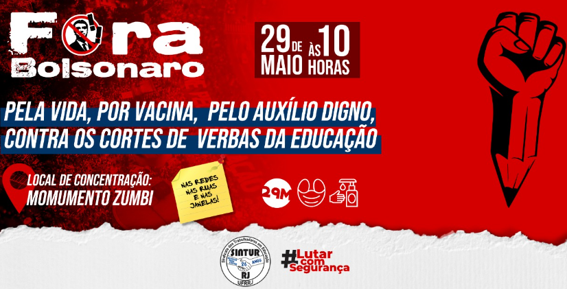Por Fora Bolsonaro, pela vida, por vacina, pelo auxilio digno, contra os cortes de verbas da educação.