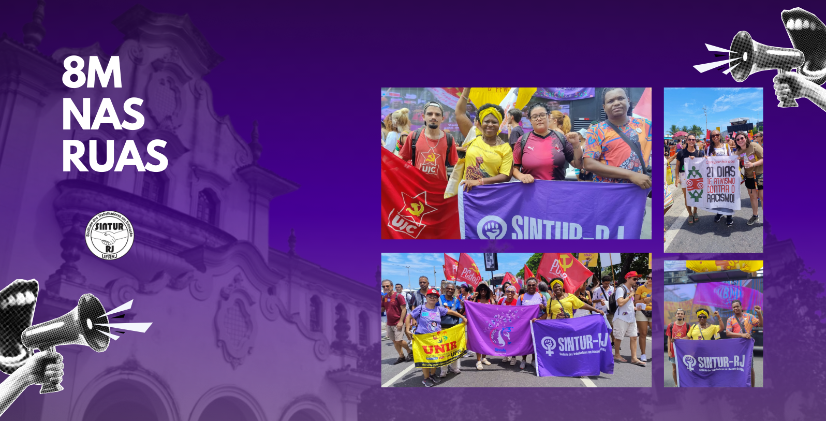 No último 8 de março, o SINTUR-RJ esteve presente no Ato Unificado do Dia Internacional da Mulher, realizado em Copacabana, somando forças a diversos movimentos sociais, entidades sindicais e organizações da sociedade civil na luta pelos direitos das mulheres.