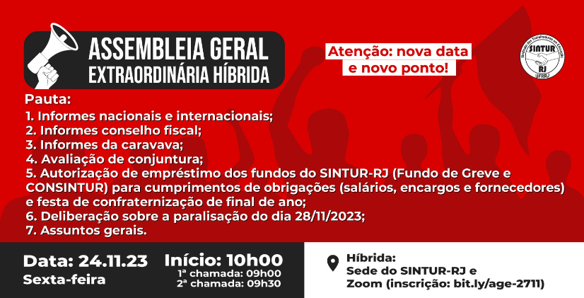 Atenção: assembleia geral extraordinária na sexta-feira, dia 24/11/2023!