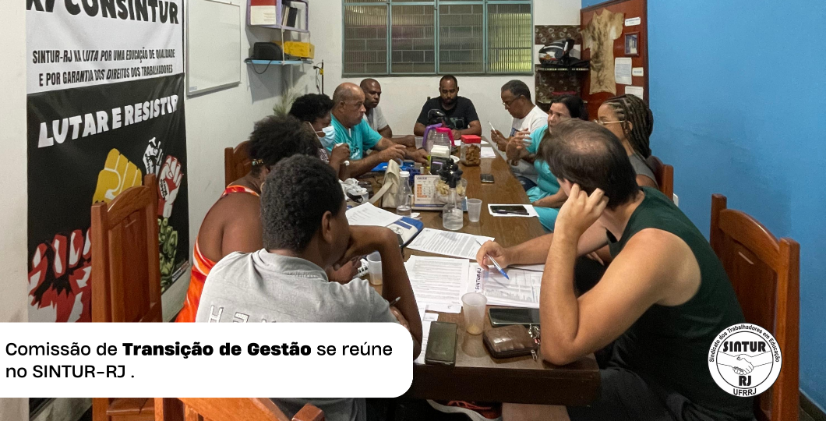 No dia 23/11 (quinta-feira), conforme direcionado pelo estatuto da entidade, a Comissão de Transição de Gestão se reuniu no SINTUR RJ. Esta comissão é composta por membros da atual direção - Biênio 2021-2023 - e da próxima direção a tomar posse - Biênio 2023-2025.