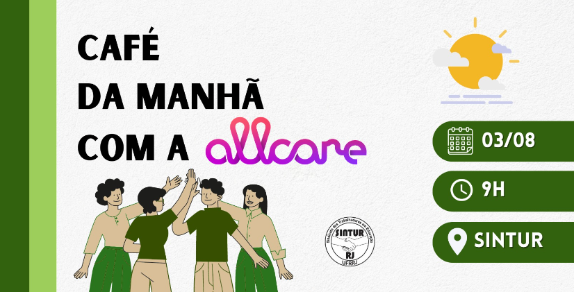 O SINTUR-RJ e Administradora do Plano de Saúde ALLCARE convidam a categoria para um café da manhã.