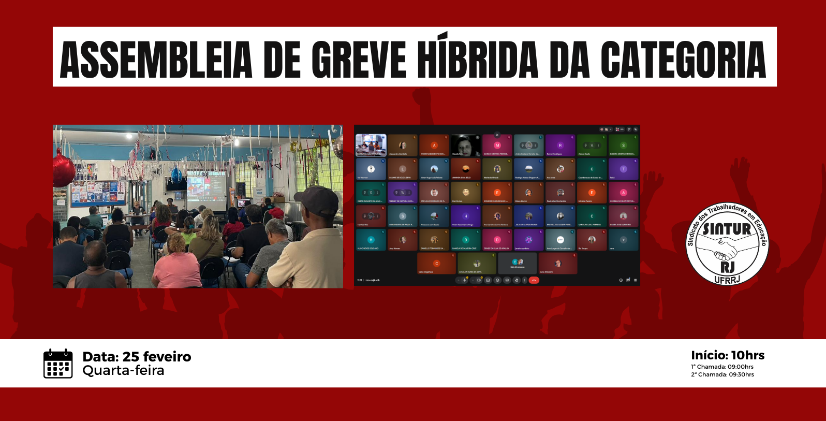 O Comando Local de Greve realizou nesta quarta-feira, dia 25 de fevereiro, a Assembleia de Greve Híbrida da categoria, com participação presencial na sede do sindicato e também de forma online, garantindo ampla presença das trabalhadoras e trabalhadores Técnico-Administrativos em Educação da UFRRJ.