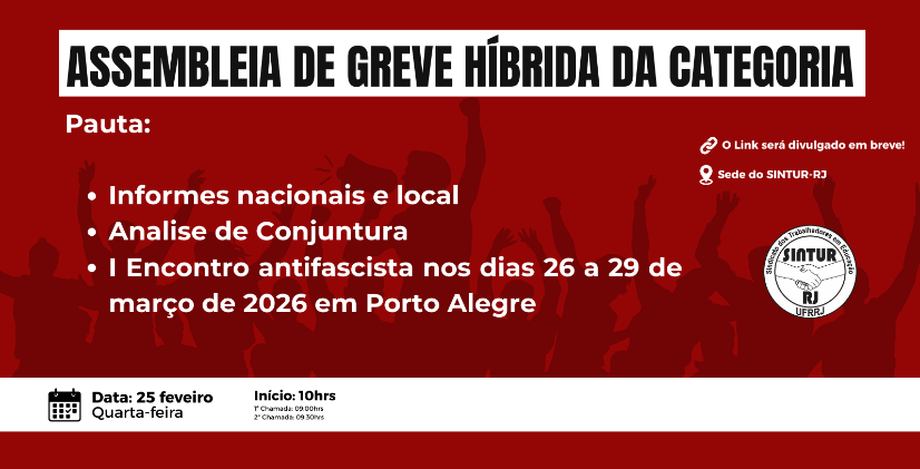 Convocamos a todas as servidoras e todos os servidores para participar da assembleia, que vai acontecer no dia 25 de fevereiro, QUARTA-FEIRA, a partir das 10h00.