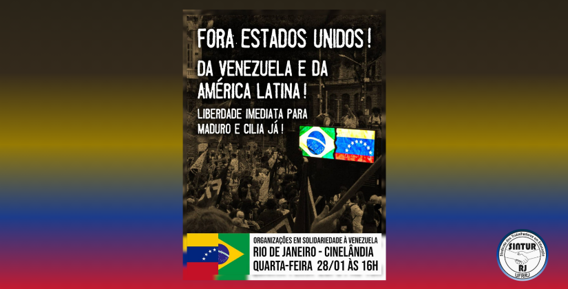 O SINTUR-RJ estará presente junto a categoria no ato em solidariedade ao povo venezuelano, reafirmando sua posição histórica em defesa da soberania dos povos, contra as sanções imperialistas e toda forma de intervenção na América Latina.