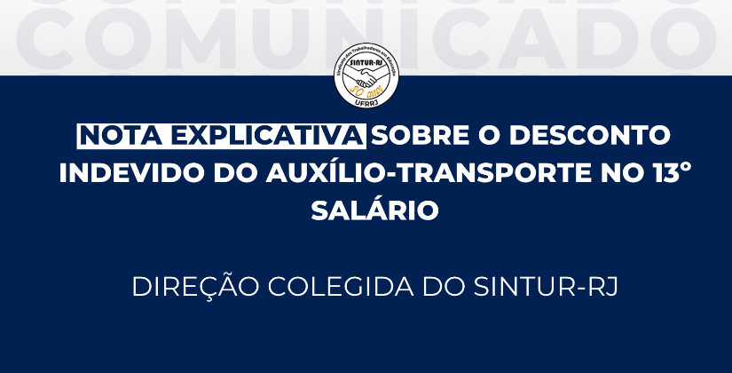 Recebemos hoje, diversas/os servidoras/es que relataram a ocorrência de desconto indevido do auxílio-transporte no pagamento da primeira parcela do 13º salário.
