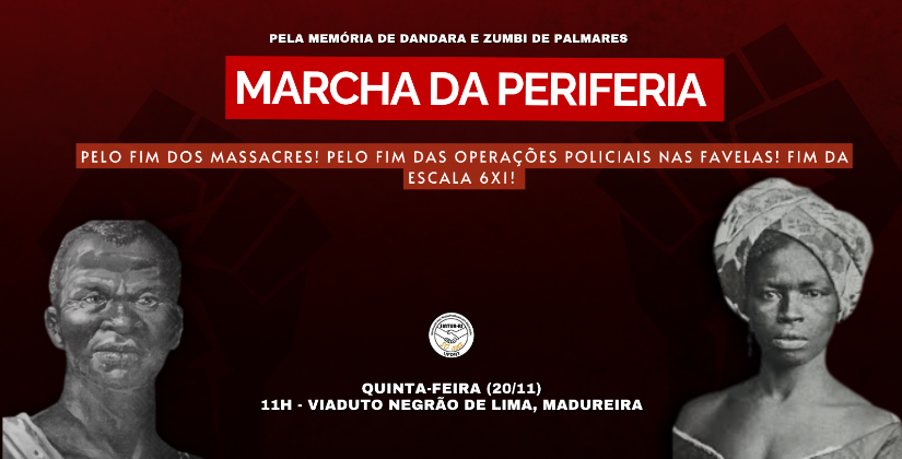 O GT ANTIRRACISMO RAÍZES DA RESISTÊNCIA convida toda a comunidade para a Marcha da Periferia contra o GENOCÍDIO do povo negro e periférico. Pelo FIM DAS CHACINAS e das OPERAÇÕES POLICIAIS nas favelas. Operações de extermínio que representam para o Estado burguês o sucesso em promover a limpeza étnica no Brasil!