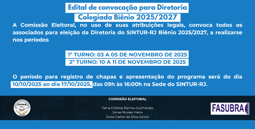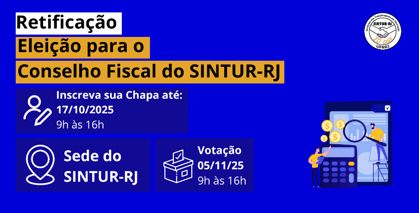 A Comissão Eleitoral tornou público a retificação referente as eleições para o Conselho Fiscal do SINTUR-RJ.