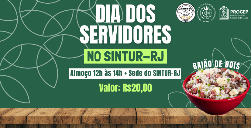 Durante a festa em homenagem ao Dia dos Servidores, o SINTUR-RJ convida todos e todas para saborear um delicioso Baião de Dois, celebrar, reencontrar os colegas e fortalecer nossa união!