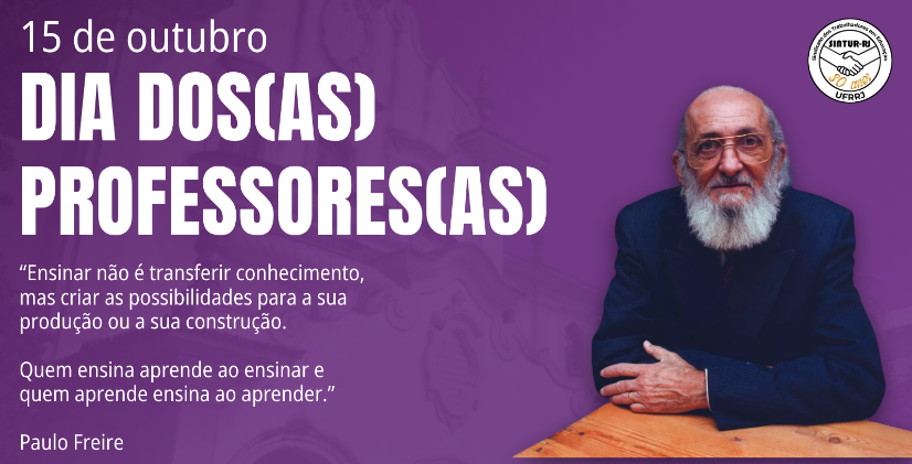 Inspirados por Paulo Freire, reafirmamos que educar é criar possibilidades para transformar o mundo. Neste 15 de outubro, o SINTUR-RJ celebra o Dia dos Professores e Professoras, mas também destaca a participação de todos os profissionais que compõem o sistema de educação com dedicação, resistência e compromisso social. Cada um, em seu papel, contribui para a construção de uma sociedade mais justa, crítica e democrática.