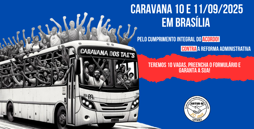 Na Assembleia do dia 02 de setembro, foi aprovada a participação em uma caravana para Brasília, nos dias 10 e 11 de setembro de 2025, durante a Paralisação Nacional contra a Reforma Administrativa e pelo cumprimento dos Termos de Acordo da Greve 2024!