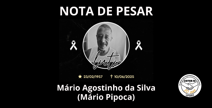É com imensa tristeza e profundo sentimento de pesar que a Direção Colegiada do SINTUR-RJ comunica o falecimento de Mário Agostinho da Silva, mais conhecido como "Mário Pipoca", no dia 10 de junho de 2025.