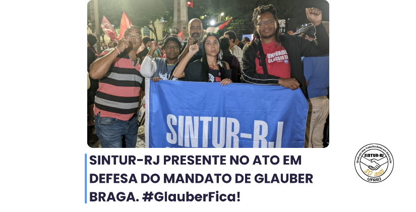 O SINTUR-RJ marcou presença no ato em defesa do mandato do deputado federal Glauber Braga (PSOL-RJ), realizado diante das ameaças de cassação movidas por setores conservadores e autoritários que tentam calar uma das vozes mais firmes da esquerda brasileira no Congresso Nacional.