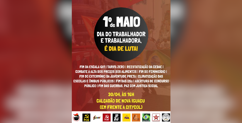 Trabalhadores e trabalhadoras de Nova Iguaçu, o 1º de Maio é mais do que uma data histórica: é um chamado à resistência! Em nossa cidade, a realidade é dura: jornadas exaustivas de 6x1, transporte público precário, salários baixos e violência cotidiana.